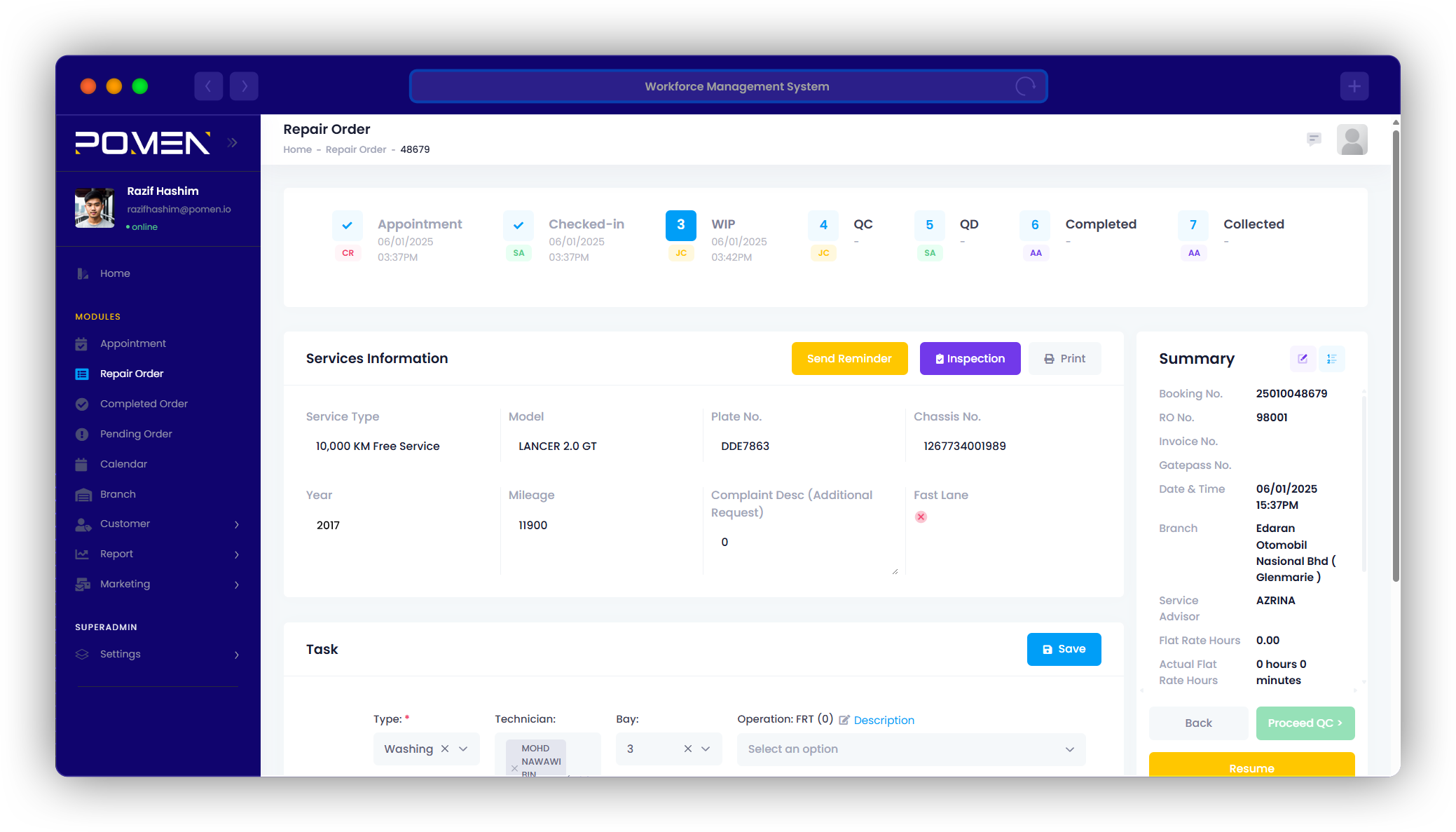 Access a centralized calendar within the workshop management system to efficiently manage and schedule appointments, tasks, and events.